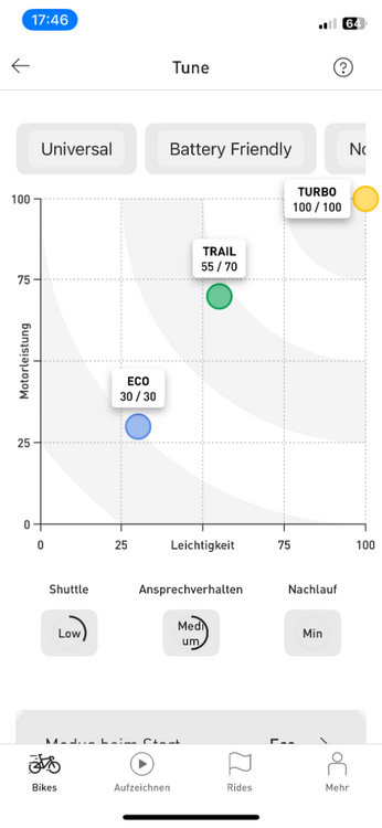 Ich fahre ein Kenevo Fattie Comp 2019. Auf dem Stoneman Arduenna hatte ich im Mai diesen Jahres Probleme, als ich die Tune-Einstellungen in der App verändern wollte. Die App hat meine Einstellungen willkürlich überschrieben und ohne einen Besuch bei einem Händler hätte ich die Tour abbrechen müssen, weil die Unterstützung unabhängig vom Modus meist bei 100% lag, die Reichweite also nicht gereicht hätte. Nach einem Firmwareupdate des Akkus lief es wieder. Nun seit Sonntag wieder das gleiche Problem. Nach langen Recherchen stellt sich heraus: Die Bluetooth-Protokolle für ältere Modelle (Gen. 1, z. B. Brose 1.2) sind nicht/nicht richtig in der aktuellen App implementiert. Der Bug ist bei Specialized bekannt: Seit App-Version 1.53 (und auch 1.54) kommt es bei älteren Bikes ohne TCU-Display (z. B. Levo/Kenevo 2018-2019) zu folgenden Problemen: Tune-Werte (Eco/Trail/Turbo) werden nach Speichern sofort wieder durch Standardwerte ersetzt. App zeigt „andere“ Werte als das Bike tatsächlich nutzt. Motor übernimmt falsche Profile (meist 35 / 60 / 100 % oder 20 / 50 / 100 %). Ursache: Die aktuelle App kann die alten Brose-Controller-Profile nicht korrekt interpretieren. Specialized hat den Bug im Sommer 2025 bestätigt (siehe Support-Ticket #E-14257) und arbeitet laut Community-Posts an einem Fix für die nächste App-Version. Trotzdem sind weder Händler noch der eigene Support entsprechend informiert worden. Die Kunden erst recht nicht. Die Händler berichten, dass sie oft erst durch Kunden von dem Problem erfahren haben. Meiner kennt das auch nicht. Und mit dem Support hatte ich heute einen nicht zielführenden Chat, weil weder Problem noch Lösung bekannt sind. Statt einer Info wird man stumpf zum Umstieg auf die neue App gezwungen, da die alte App, die noch funktioniert hat, gesperrt wurde, ohne dass es eine Lösung für die neue App gibt. Ich habe jetzt das Dilemma, dass meine Unterstützungseinstellungen in der neuen App nicht mehr konfiguriert werden können, sondern willkürlich festgelegt werden. Mit dem Problem befinde ich mich in guter Gesellschaft, siehe Foren und/oder Bewertung der App im Playstore. Das macht das E-Bike fast schon nutzlos. Das finde ich - sorry - schon hammermäßig. Mit Klick auf die Tune-Einstellungen zerschießt mir die App jede Konfiguration, ohne dass Specialized den Händlern oder dem Support oder mir eine Lösung/einen Workaround zur Verfügung stellt. Das ist, wie wenn ich nach einem Firmwareupdate meiner Fernbedienung keine Programme mehr auf dem Fernseher auswählen kann, weil der das nun ganz autark/willkürlich macht. Nur handelt es sich hier um ein Bike für 5 TEUR.
